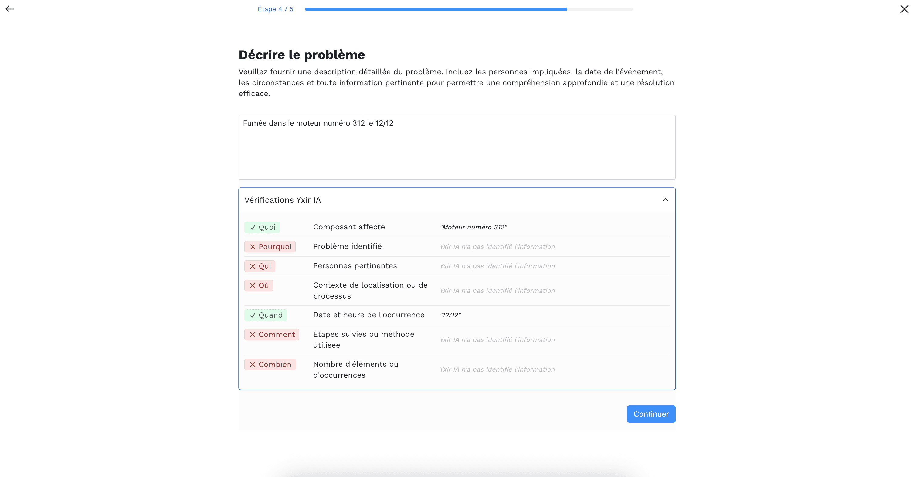 Saisie d'une non-conformité à l'aide de l'IA, à Yxir